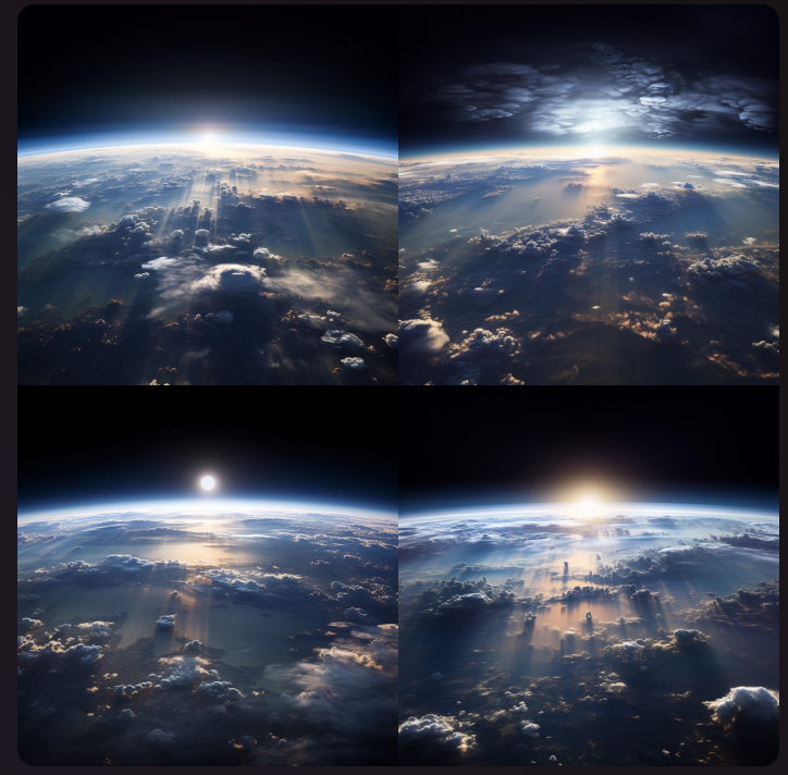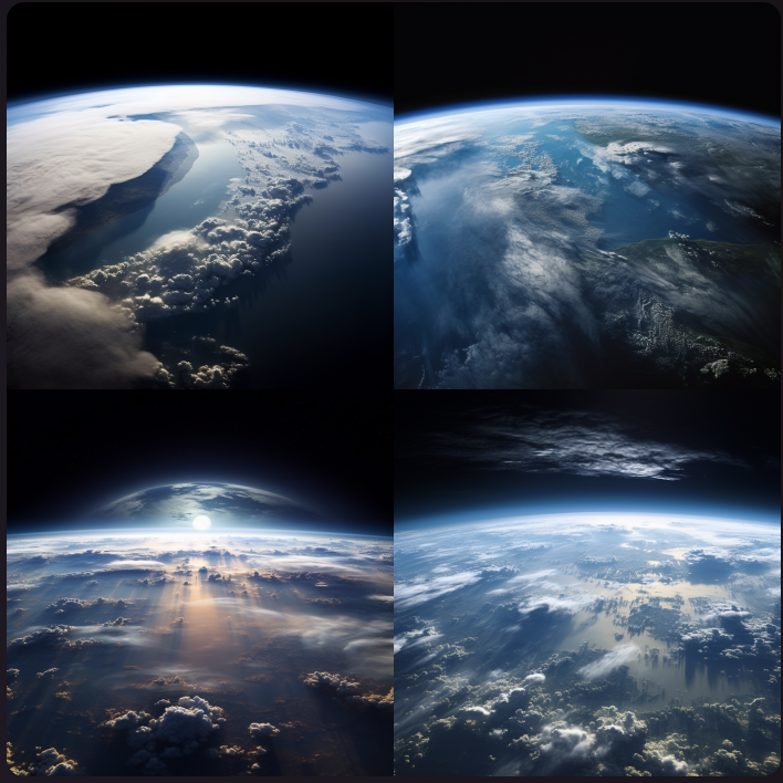 Prompt 2: curvature of the earth from space, half black space, half the planet with lots of clouds