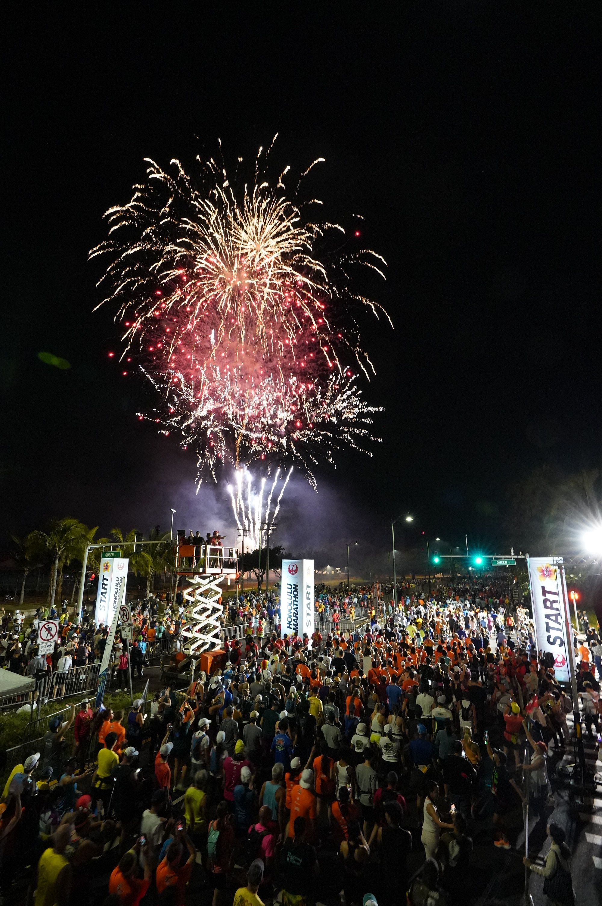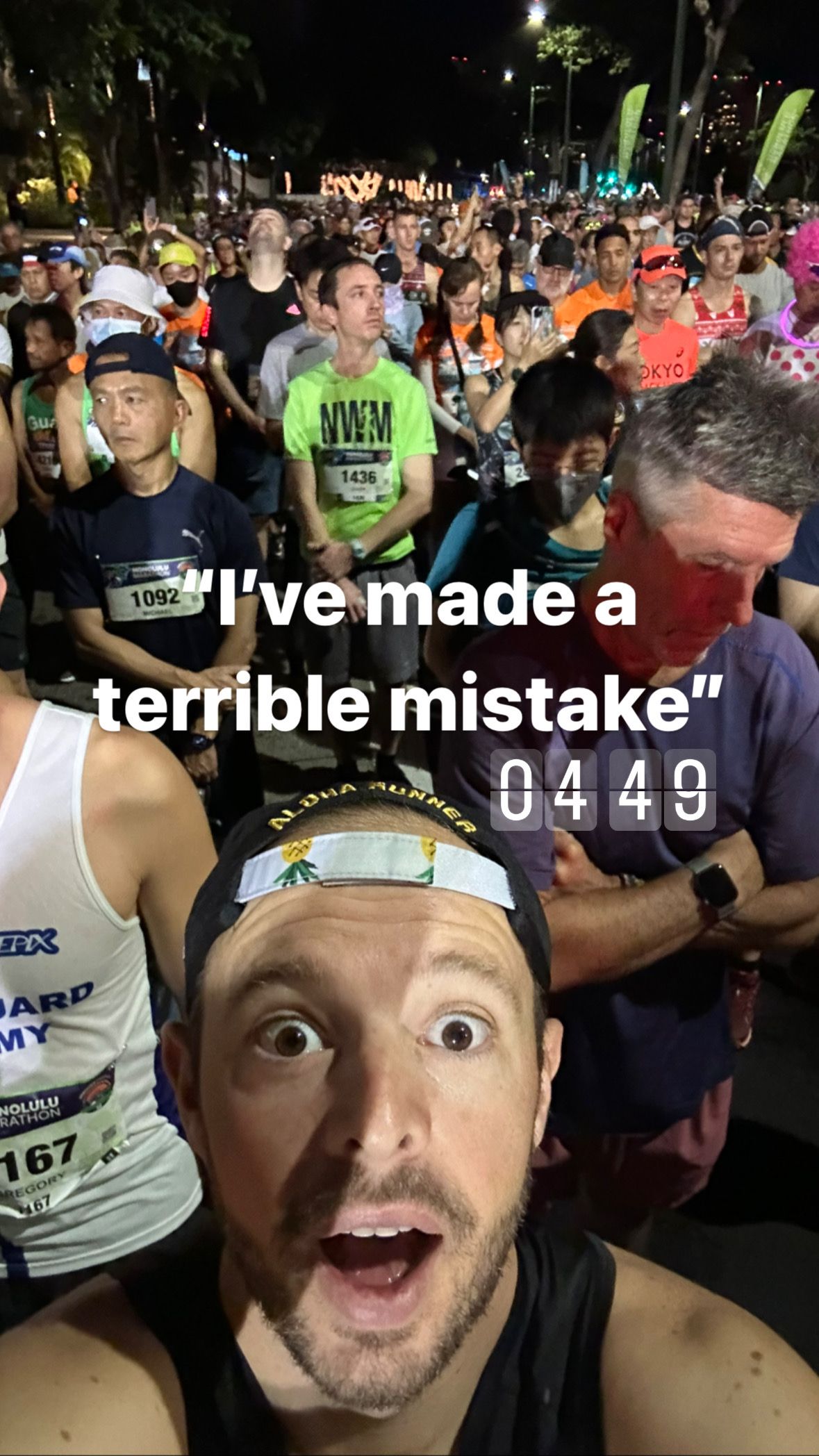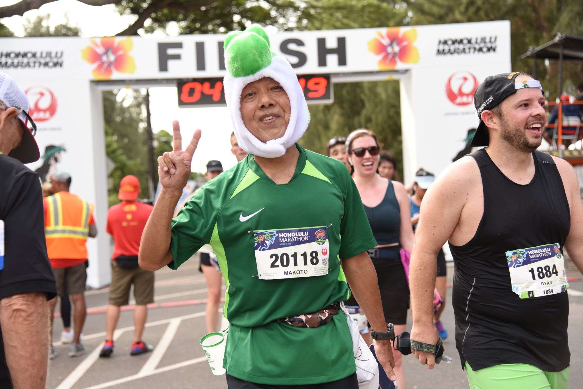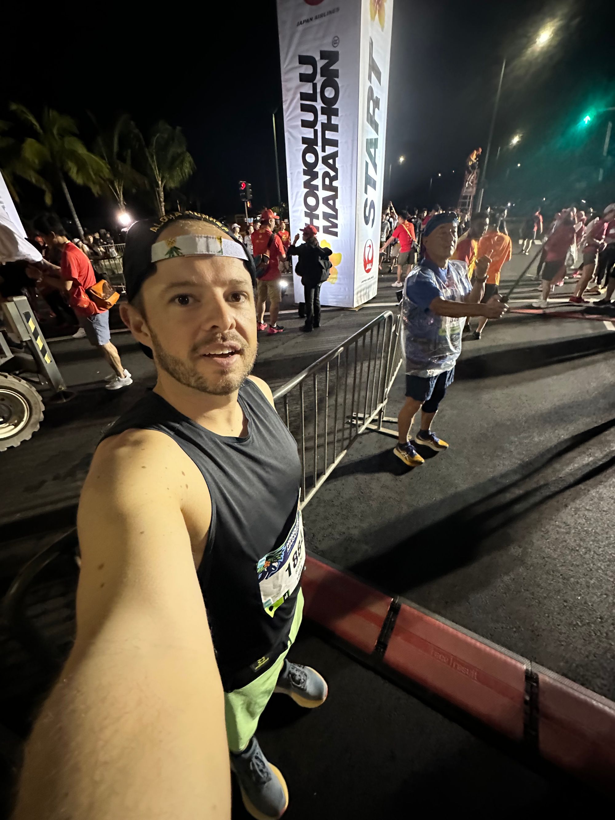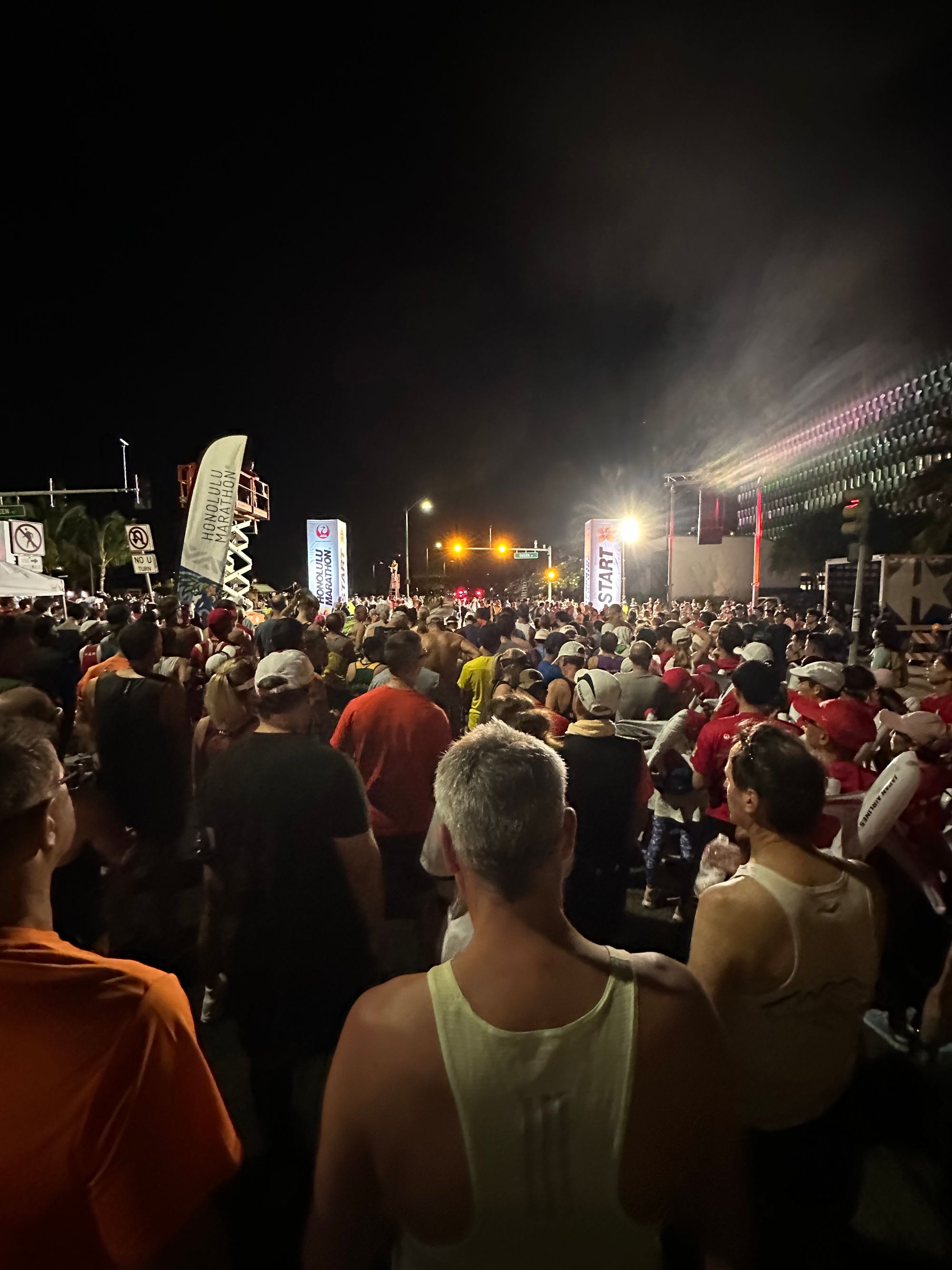 I really appreciated the emcees - trying to get people hyped up, spitting all sorts of facts, and telling us there were 2 (I think?) people that had run all 50 Honolulu marathons running today. Savages.