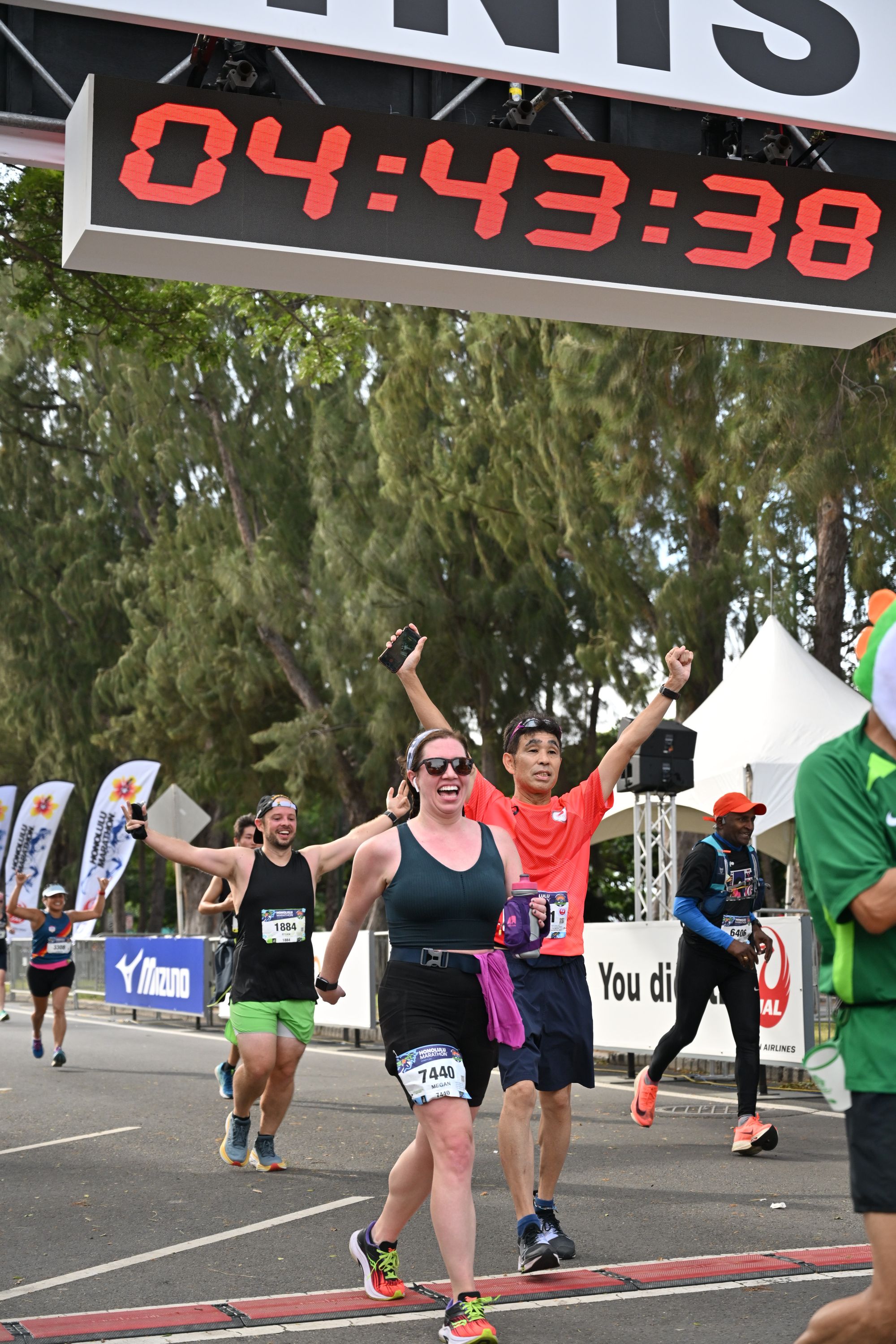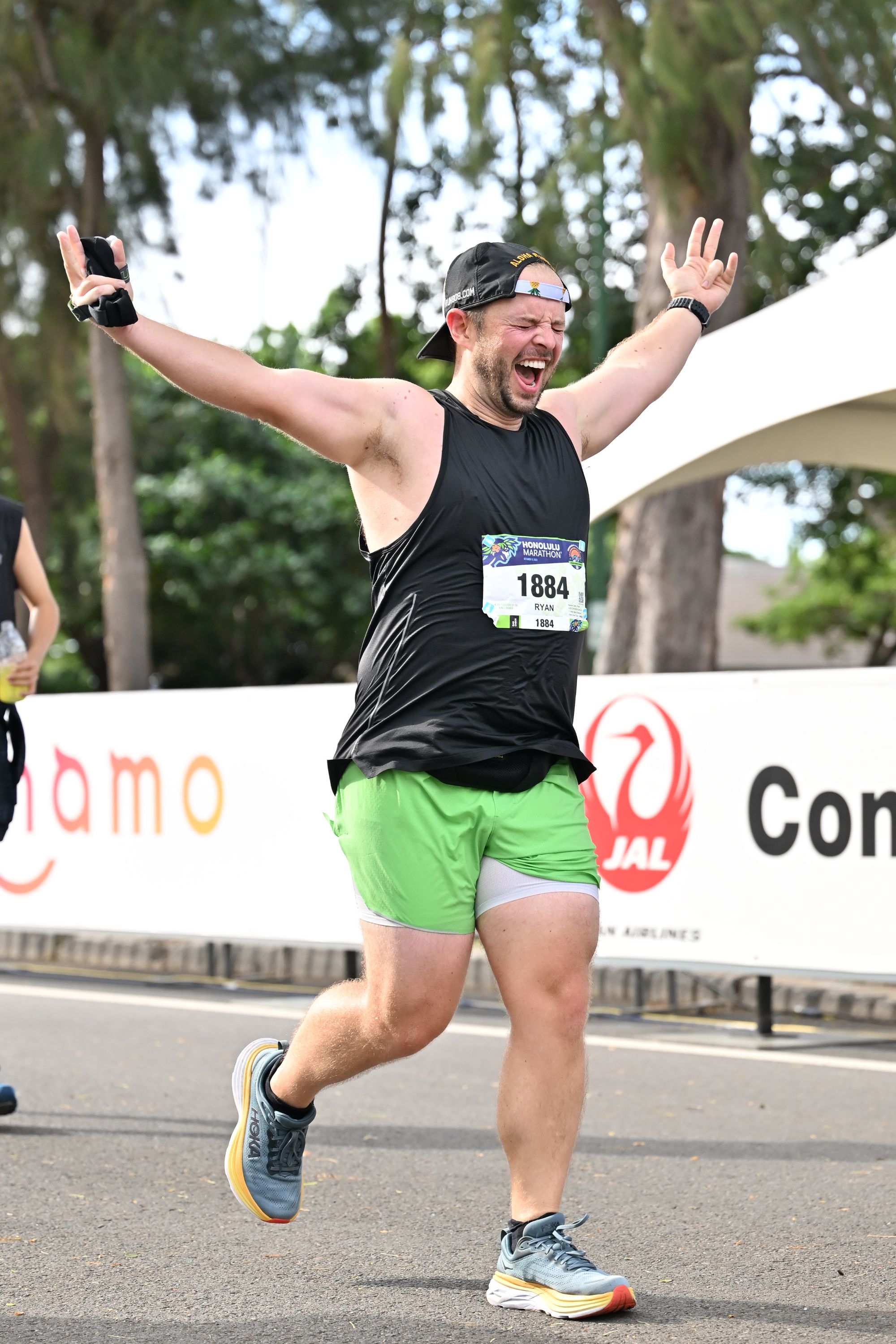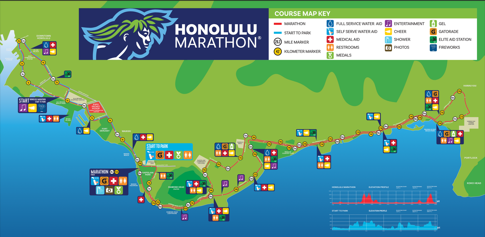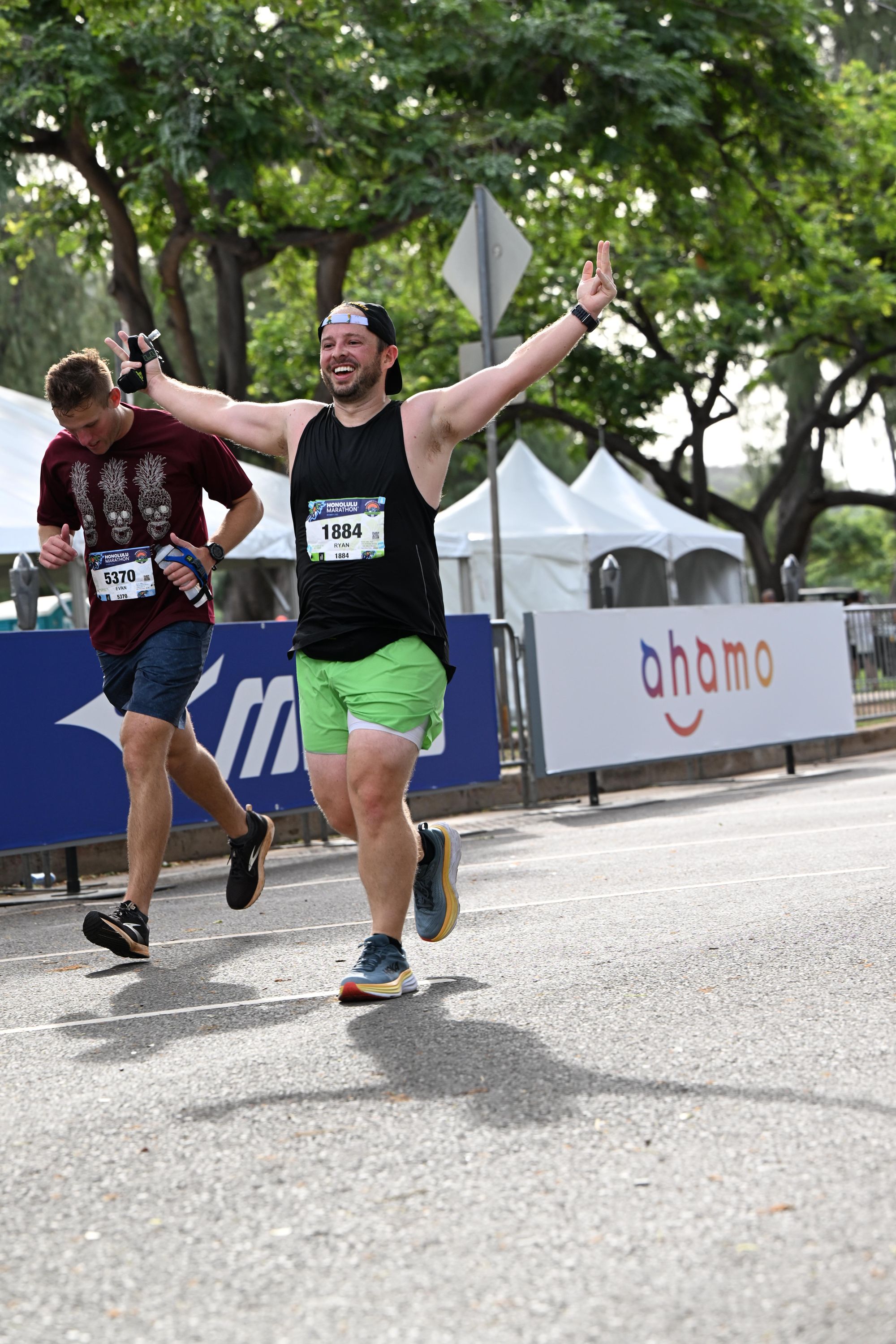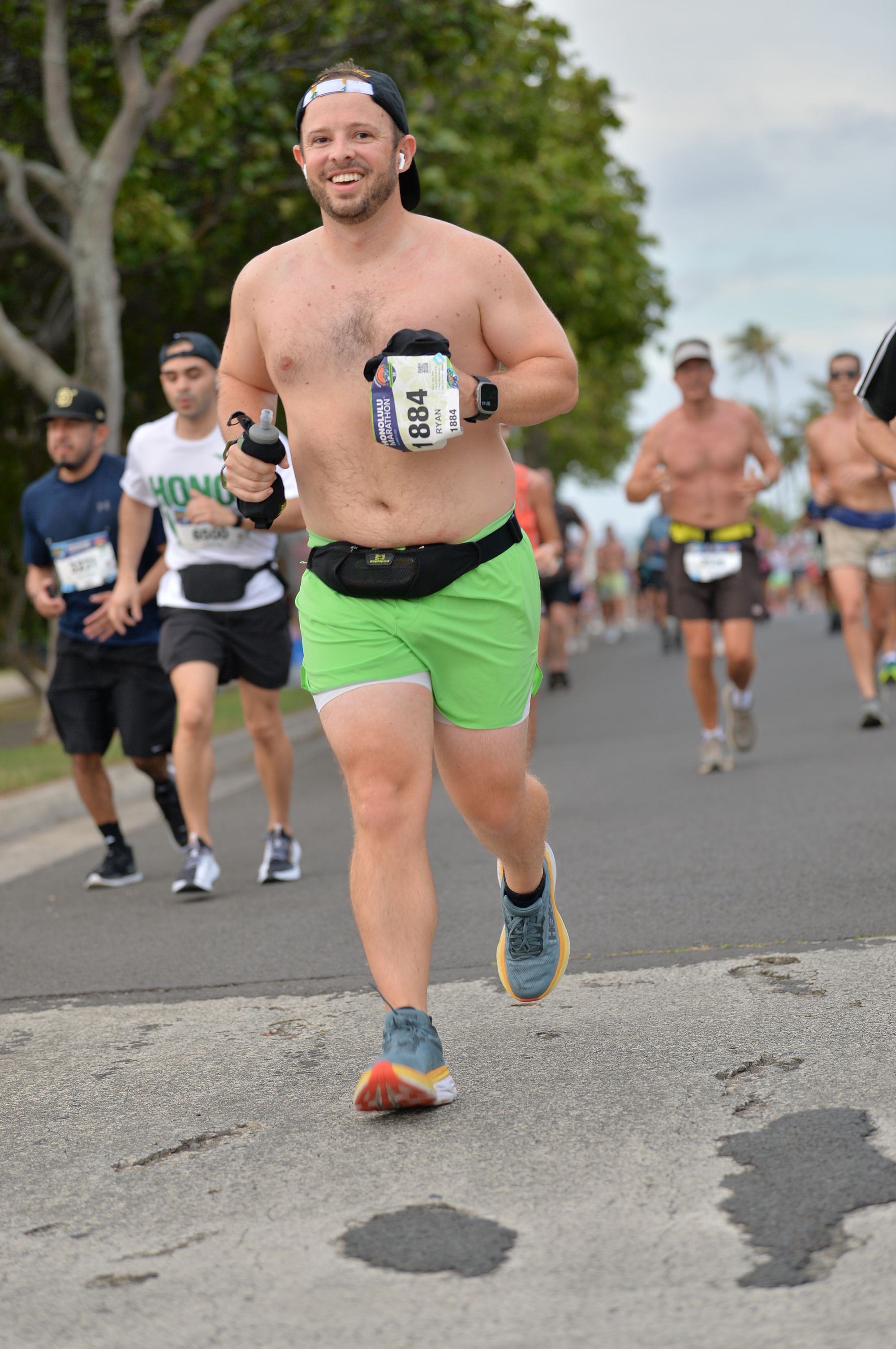 I really appreciated the emcees - trying to get people hyped up, spitting all sorts of facts, and telling us there were 2 (I think?) people that had run all 50 Honolulu marathons running today. Savages.