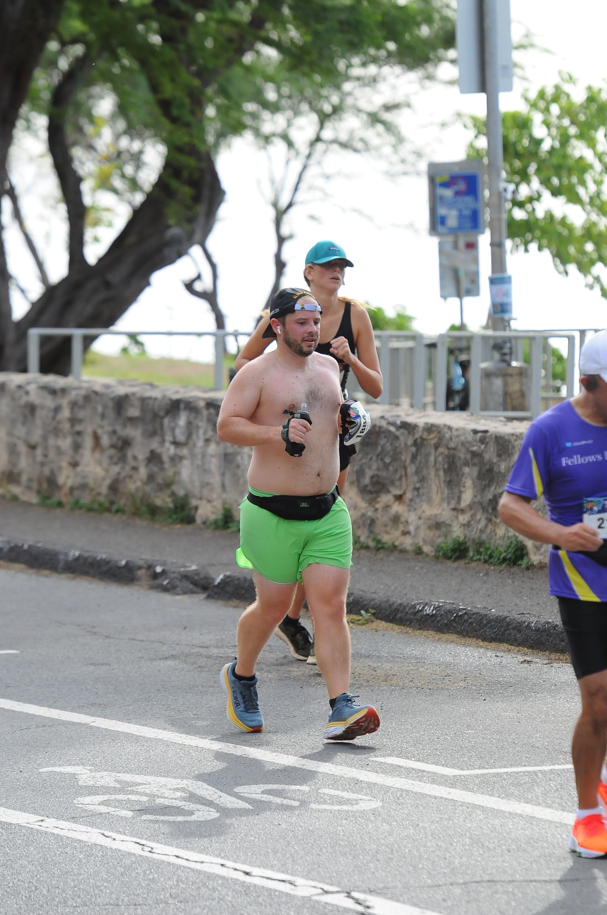 Right before the climb up the back of diamondhead a DJ was BLASTING EDM. I'm sure the Kahala residents loved it, but was a nice and necessary boost. Just before it a guy in front of me was weaving all over the course and someone ran out from the aid station to make him sit down.